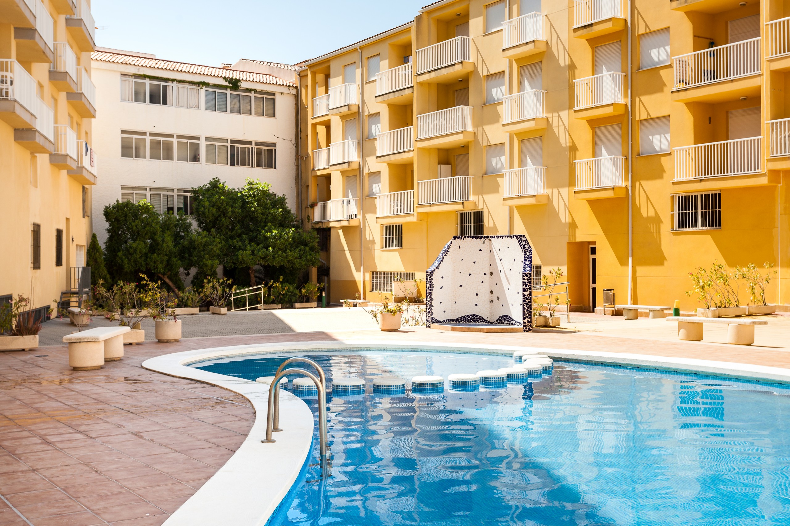 The complex lies just 100 m from the nearest beach and the resort centre. A diverse range of entertainment and tourist options are to be found in the surrounding area.||Opened in the year 2000, this 4-storey complex counts a reception desk and a lift amongst its facilities.||The complex offers apartments with 1 or 3 bedrooms. Each comes with a full bathroom, a dining/ living room area with a double sofa bed and a TV, a kitchen with an oven and a washing machine and a terrace or balcony. Included in the price is a once-weekly bed linen change, water, gas, electricity, use of the pool and cleaning prior to and following guests departure.||A swimming pool with a childrens paddling area is open for use.